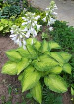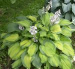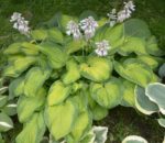 Paradigm (Walden West/Chuck Purtymun 1999) L Большая хоста с лавандовыми цветами. Листья золотистые с сине-зеленым краем, слегка сморщенные. Размер куста 50х120 см. Лист 30х25 см. Растёт на солнце/тени. Рост средний.