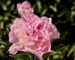 Скакодуб 2004 Анемоновидный розовый, при раскрытии он имеет зеленовато-мясисто-розовую подсветку в центре, затем становится бело-кремовым с телесной подсветкой, жесткие лепестки, диаметр 15 см, очень ароматный, 110 см высотой , средний срок цветения