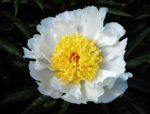 Mamino Serdechko( Дубров В.М. 1996, Россия) Японский пион Российской селекции. Цветок белый. В центре цветка красные точки гребешков пестиков. Стаминодии желтые. Диаметр 18 см. Куст слегка раскидистый. Стебли прочные. Высота 80 см. Срок цветения средний.