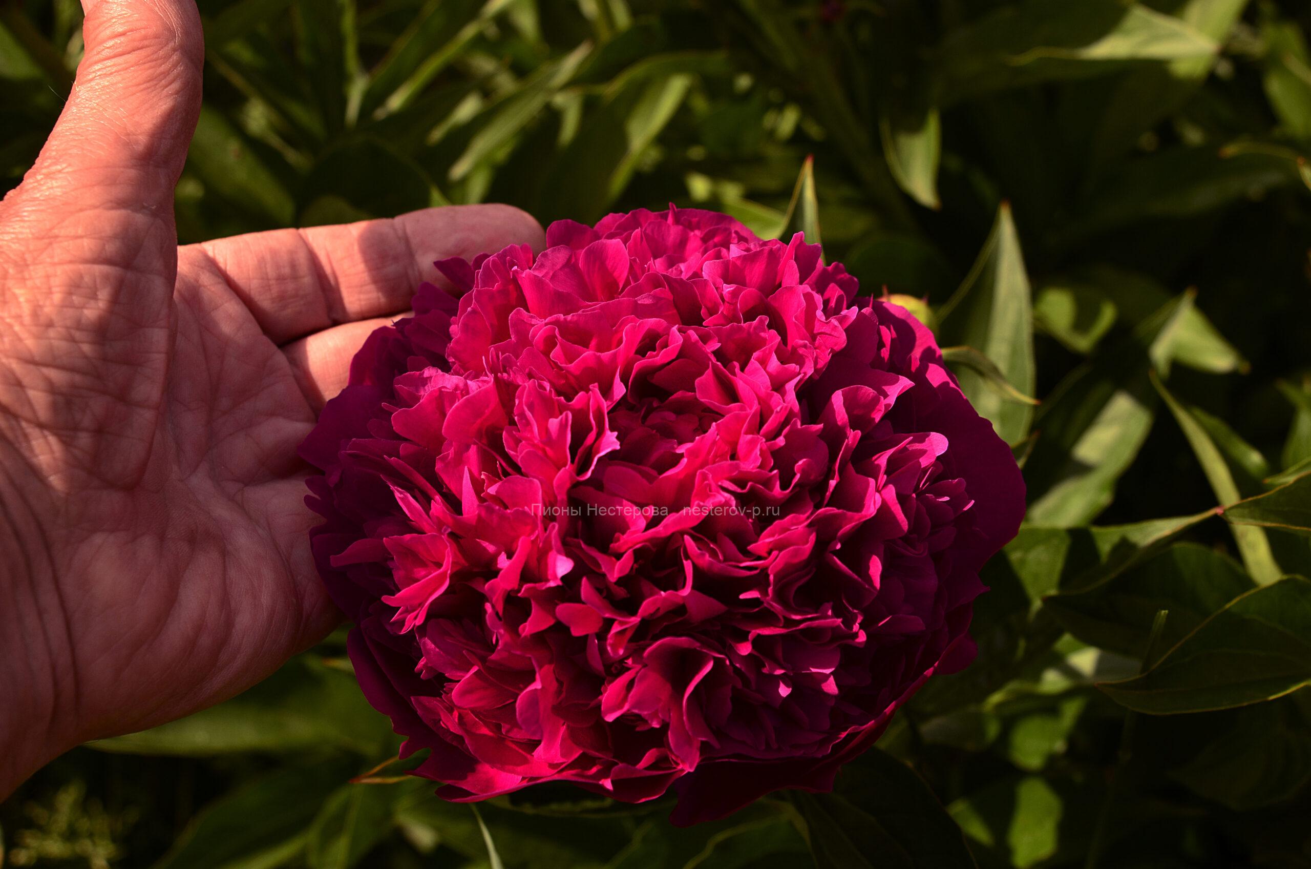 (Нестеров, 2025) Молочкоцветковый. Темно-красный со свекольным оттенком. Хорошо набит. Цветок крупный – 18 см. Высота куста около 80 см. Срок цветения средний.