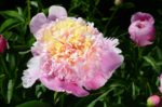 (Скакодуб, 2014) Фантазия – пион с внешними розовыми лепестками. Стаминодии розовые и желтые. Стебель крепкий.