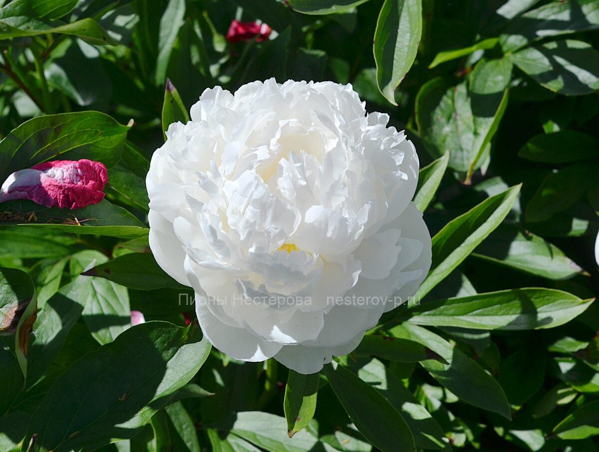 Allan Rogers (Seidl/Wierstra, 2008) Чисто белый цветок, из глубины которого просвечивается едва уловимая желтизна. Цветки этого пиона – крупные. Аромат еле уловимый. Куст компактный. Цветки расположены на прочных стеблях. Соответственно, опора ему не требуется.