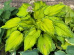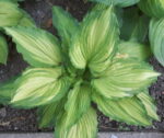(Jan van den Top) L Крупная хоста с бледно-лавандовыми цветами. Красивые, гофрированные, яркие листья цвета шартрез с темно-зеленой каймой, которая немного доходит до центра. В конце сезона шартрезный центр становится почти белым. Растет в полутени/полной тени. Высота 50-55 см. Рост средний.