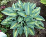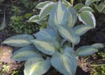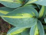 Catherine (Gerard Heemskerk 2011) M Средняя хоста с лавандовыми цветами. Листья сердцевидные нежно-желтые, с широким синим краем. Лист 15х10 см. Размер куста 40х70 см. Растет в полутени/тени. Прирост средний.