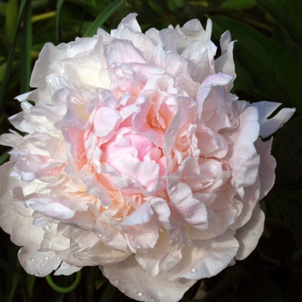 (Shaylor, 1917, USA) Крупный, густомахровый, шаровидный пион отличного строения. Цветы с огромными лепестками бледно-розового цвета, воротником телесно-белого цвета и немного более темным оттенком в компактном, похожем на розу центре. При раскрытии он нежно-розового цвета с перламутровым блеском, далее он становится почти белым с зеленоватым оттенком у основания. Диаметр 19 см. Высота 100 см. Стебли крепкие. Темная, блестящая листва. Срок цветения средне-поздний. Обильноцветущий. Аромат приятный.