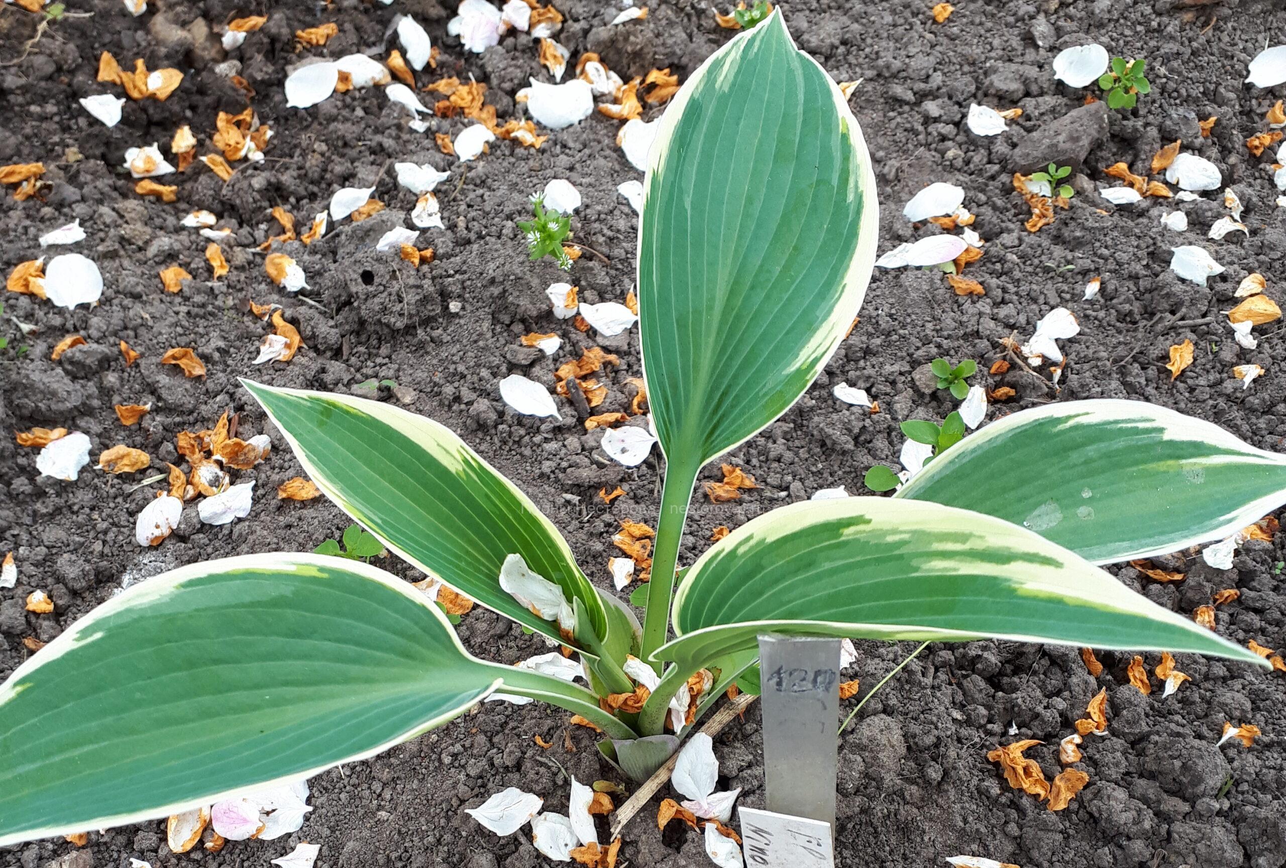 (Piet Warmerdam, 2003) Средняя хоста с сиреневыми цветами. Листья ярко-синего цвета в форме сердца с белой широкой каймой. Растет в полутени/полной тени. Лист 17х12 см. Высота от 40 до 45 см. Рост средний.