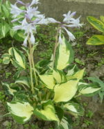 (Hans Hansen/Shady Oaks Nursery, 1999) М Средней хосте “Огонь и лед” больше всего подходит утреннее солнце. Листья с белоснежной серединкой и очень темно-зелеными краями идущими к середине листа шириной 2 см, создают удивительный контраст. Листья очень плотные, слегка блестящие сверху и сизоватые снизу, слегка скручены и умеренно загнуты. Цветы лавандового цвета. Черешок белый с зеленым краем. Лист 15×10 см. Размер куста 35×50 см. Растет в полутени/полной тени. Рост средний или медленный.