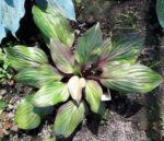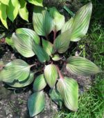 First Blush (Bob Solberg 2016) М “Первый румянец” Средняя хоста с лавандовыми цветами, красными черешками, зелёными листьями и тонким красным краем. Весной лист начинает краснеть между прожилками. Эта расцветка сохраняется до жарких дней. Полутень также способствует красному цвету. Растет в полутени и в тени. Лист 22х13 см. Размер куста 35х70 см. Прирост средний.
