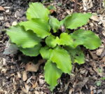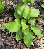 (Jan van den Top) М Средняя хоста с толстыми листьями, и волнистым, зазубренным краем на красных черешках. Листья весной ярко-желтые, затем становятся зелеными. Высота 30 см. Растет в полутени/полной тени. Рост медленный.