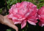 Laura Magnuson (Saunders, 1941) Полумахровый,чашевидный, лепестки волнистые, широкие. Цветок очень крупный, розово-коралловый, лепестки снаружи у основания со светлым пятном, нити тычинок короткие, лимонно желтые, пестики с розовыми рыльцами.Стебли толстые, прочные.Высота 70см. Поражает размерами цветка. Средне-ранний.