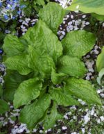 (Doug & Mardy Beilstein/Bob Solberg, 2012) М “Прыгающая Ящерица” Средняя хоста с лавандовыми цветами. Привлекательные блестящие, чашевидные, зеленые листья сильно гофрированы, сложены и сильно сморщены. Край листа немного волнистый. Каждый лист неповторим. Лист 18×10 см. Размер куста 45×50 см. Растет на солнце/в тени. Рост средний.