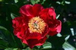 (David L. Reath, Vulcan, Michigan, 1992) Полумахровый. Цветок мощный, яркий, красно-оранжевый, сияющий, с атласно-кожистыми лепестками. В центре пучок из желтых тычинок. Лепестки немного волнистые. Диаметр цветка 17 -20 см. Листья светло-зеленые. Стебли прочные. Высота куста 90 см. Ароматный. Цветение в средне-ранние сроки. Награды: Пион года 2014, Золотая медаль 2013 Американского общества пиона.
