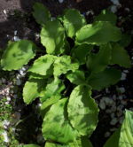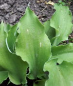 (Jim Hawes/Pete & Jean Ruh, 2005) М Средняя хоста с зелеными, чашевидными, скрученными, очень волнистыми листьями на красных черешках. Кончик листа заострен. Изнанка листа белая. Цветы лавандового цвета. Растет на солнце/в тени. Лист 17×14 см. Размер куста 35×65 см. Рост средний.