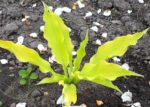 Marrakech (Kent Terpening/AHS/G. Alley 2019) SM Небольшая средняя хоста с бледно-лавандовыми цветами и красивыми розовыми цветоносами. Копьевидные желтые листья с волнистыми краями, немного скручены и сложены. Лист 20х8 см. Размер куста 20х70 см. Растет на солнце/в тени. Прирост средний.