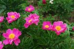 Nymphe (Дессер, 1913) Японский. Цветок чашевидной формы кораллово-розового цвета. В центре яркие жёлтые тычинки. Цветение обильное. Аромат приятный. Срок цветения средний. Диаметр 15 см. Высота до 90 см. Сорт отлично смотрится как в групповой посадке, так и в одиночной.