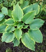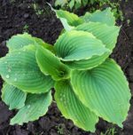 (Hans Hansen/Shady Oaks 2007) L Крупная хоста с бледно-лавандовыми цветами. Растет в полутени/полной тени. Листья темно-зеленого цвета в форме сердца с узким желтым краем, который подчеркивает волнистый край листа. Лист 35х23 см. Размер куста 65х130 см. Прирост от среднего до медленного.