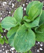 Spilt Milk (Mildred Seaver 1999) ML “Пролитое молоко” – это хоста с необычными листьями и почти белыми цветами. Чашевидные сине-зеленые листья, с белыми прожилками и зеленовато-желтой пятнистой серединкой. Рисунок листа отличается от типичных неустойчивых полос, встречающихся в пестрых хостах. Растет в полутени/тени. Лист 25х20 см. Размер куста 60х120 см. Прирост от среднего до медленного.