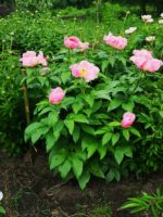 (Rogers, 1988, США) Простой. Цветок чашевидный, кремово-розовый с лососёвым оттенком. Тычинки золотистые. Лепестки рифлёные и волнистые. Стебли прочные. Листва тёмно-зелёная. Куст высотой 60-80 см, не разваливается даже в непогоду. Срок цветения очень ранний.