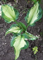 (Roger Cornitensis/AHS/G. Alley, 2020) L У крупной хосты “Искушение” почти белые цветы. Большие округлые и сморщенные сине-зеленые листья с кремово-белым центром. Лист гофрированный, волнистый, немного скрученный. К концу сезона центр немного зеленеет. Растет в полутени/полной тени. Лист 28×25 см. Размер куста 65×140 см. Рост средний или медленный.