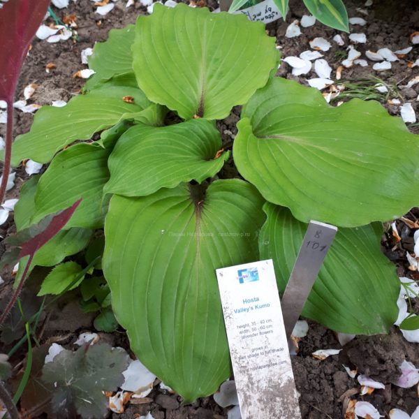 Valley’s Red Scorpion (Jeroen Linneman 2015) МL Средняя хоста с лавандовыми цветами. Немного блестящие темно-зеленые листья с волнистым краем. Красный цвет черешков проникает далеко на лист. Лист 23х18 см. Размер куста 55х90 см. Растет в полутени/полной тени. Прирост средний.