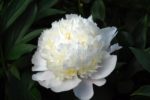 WHITE CHARM (Glasscock-Falk, 1964). Гибрид. Цветок махровый, бомбовидный, напоминает Red Charm по размеру и форме. Внешние лепестки при роспуске светло-розовые, затем белые, на кончиках разрезанные, внутренние лепестки – кремовые .Диаметр 17см. Стебли прочные. Высота куста 80см.