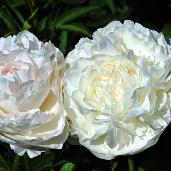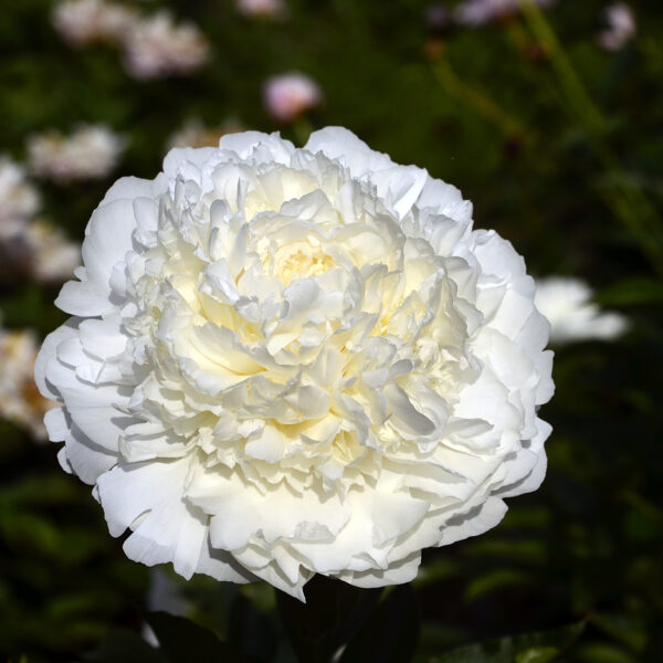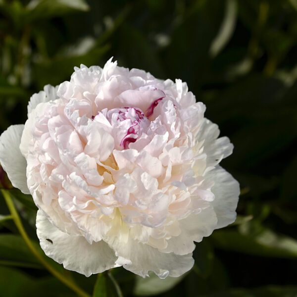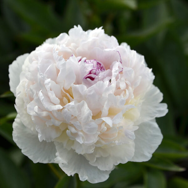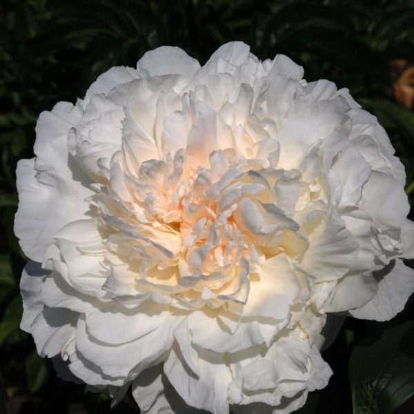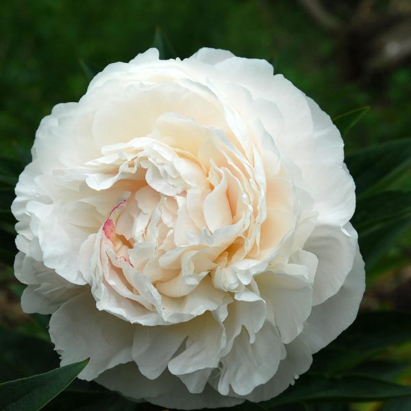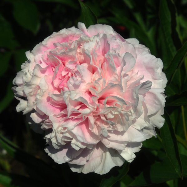 (Klehm 1986) Огромные бело-румяные шары с прекрасным ароматом. В момент раскрытия этот пион имеет светло-розовый цвет, затем постепенно становится кремово-белым.