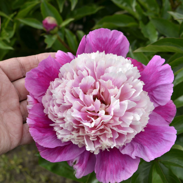 Mr Ed (Klehm, 1980) Махровый, полушаровидный. На одном кусте могут распускаться разные по окраске цветки: розовые, белые. Иногда цветок поделен строго пополам на розовую и белую части. Диаметр 20 см. Стебли прочные. Высота 75 см. Приятный аромат. Срок цветения средний. При делении не все молодые растения повторяют свойства материнского, может появиться и что-то новое. Оригинальный сорт. Фантастическая мутация сорта Mons. Jules Elie.