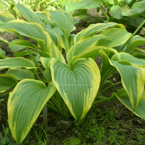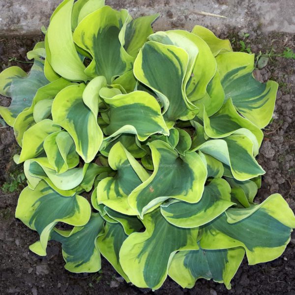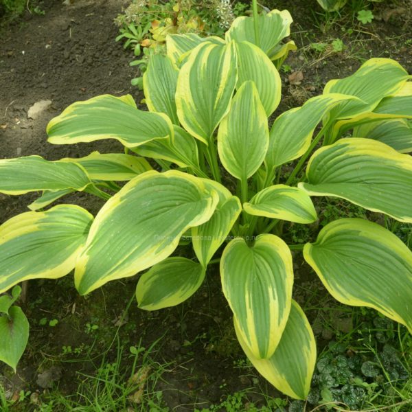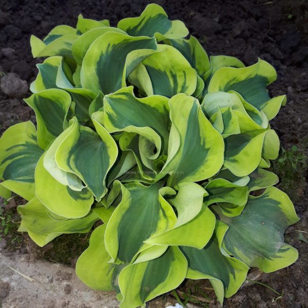 350 ₽Moon Split (Danny Van Eechaute 2010) L Большая хоста с бледно-лавандовыми цветами. Листья с широкой шартрезно – жёлтой каймой и узко темно – зелёной полосой в центре. Лист 20х16 см. Размер куста 50х90 см. Растет в полутени/тени. Прирост средний.