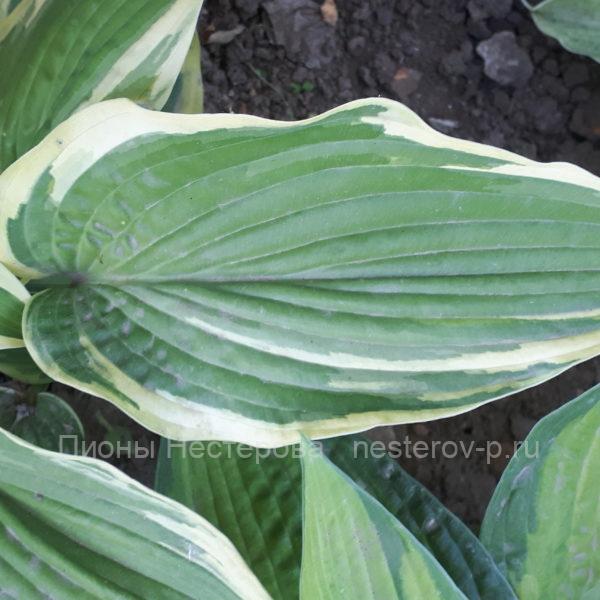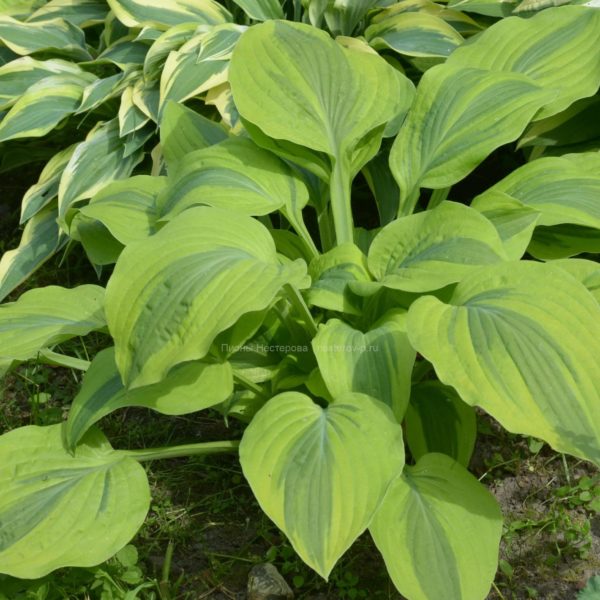 600 ₽(Jim & Meg Dalton) М Cредняя хоста “Утренняя слава” имеет зеленые листья с широкой кремово-белой каймой. Цветы лавандового цвета. Растет в полутени/полной тени. Высота 40 см. Рост средний.