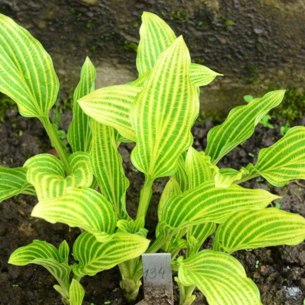 3 500 ₽Хоста средняя “Мито-но-хана” хана” (Tenjin Yama Bunen Nursery, Japan) имеет зеленые листья с желтыми прожилками. Цветы лавандовые. Растет в полутени и полной тени. Высота от 30 до 35 см. Прирост средний. Листья будут полностью зелеными в конце сезона.