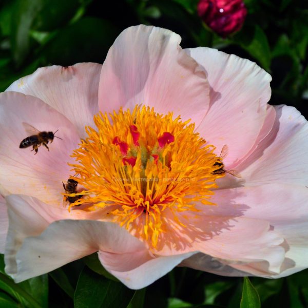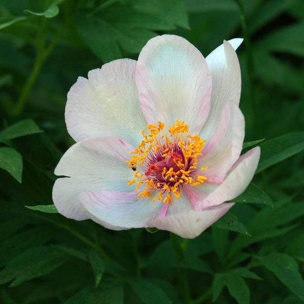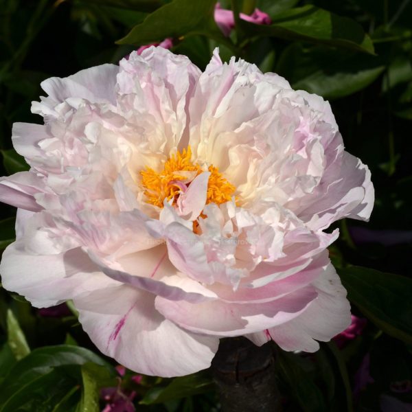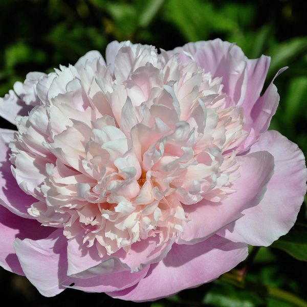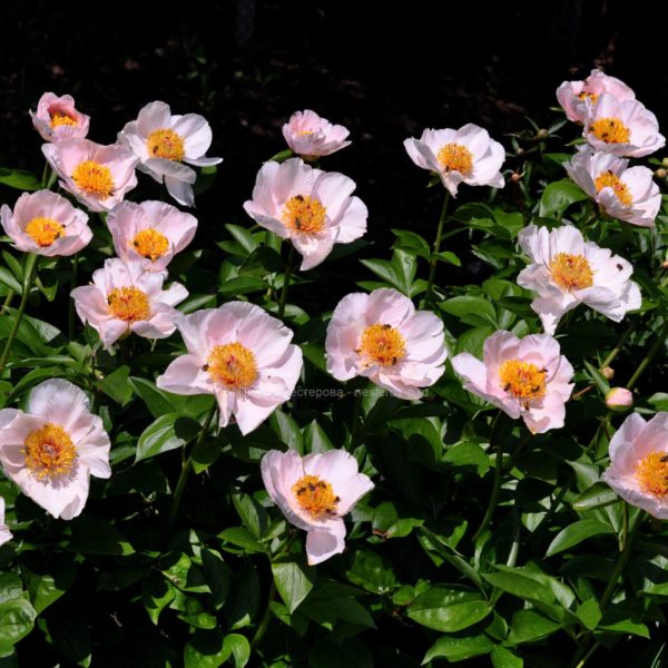 (Fafard 2017 Канада) Пион с полумахровой формой цветка. Обычно 3 цветка на стебель. Диаметр цветка 18 см. Цветок нежный бледно-розовый. Внешние лепестки практически белого цвета, в то время как внутренние лепестки темнее. Цвет распределяется неравномерно,