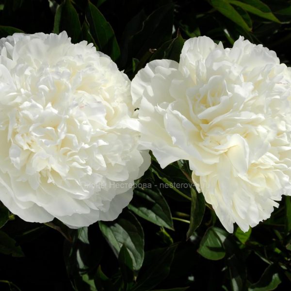 ( Получен непосредственно от фирмы “Omeo” Нов. Зеландия ) Махровый. Белый с кремовым подсветом изнутри, плотный. Диаметр цветка 16 см. Срок цветения средний. Высота куста 70 см.