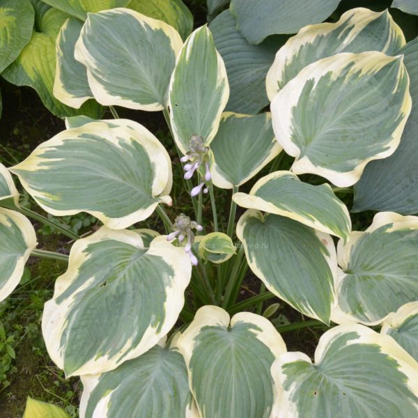 300 ₽Orion_s Belt (Dick & Jane Ward 2003) M Эффектная хоста, за счёт резкого перехода от кремово-белой каймы к тёмно-зелёному центру. Размер куста 45х100 см. Лист 20х13 см. Хоста с сердцевидными листьями и лавандовыми цветами. Растёт в полутени/тени. Прирост от среднего до медленного