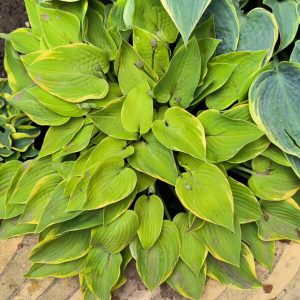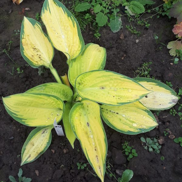 200 ₽(Naylor Creek Nursery, 1999) S Небольшая хоста с листьями округлой формы, желтые с кремовой каймой. В течение сезона кайма становится белой. Растет в полутени/полной тени. Высота 25-30 см. Рост быстрый. Эта хоста является превосходным растением для использования в качестве бордюра в лесном саду