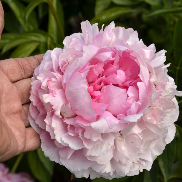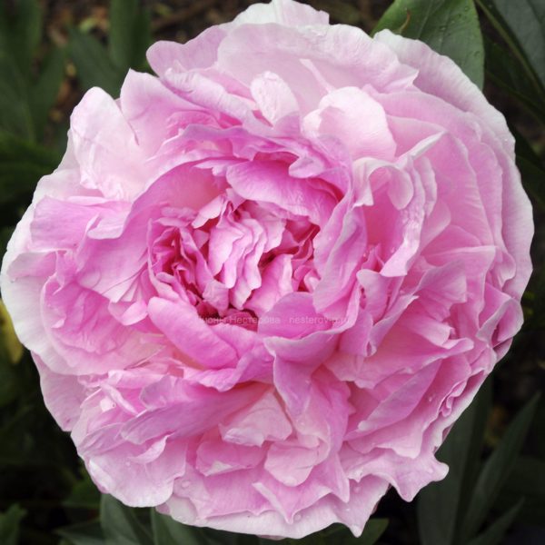 (Сейдл/Бремер,2016,США) Гибрид. Махровый, розовидный. Огромные розовые цветы теплого тона с легким коралловым оттенком. Большие Наружные лепестки очень крупные, волнистые, в то время как внутренние лепестки меньше, гофрированные и развернуты в разные стороны. Кремово-розовые рыльца и светло-зеленые плодолистики. В=90см Д=20-22см. Куст мощный с прочными стеблями и темно-зеленой листвой, не подверженной болезням. Быстро растущий и обильно цветущий. Легко плодоносит в обоих направлениях. Ранне-среднего срока цветения.