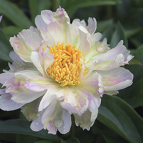рассеченными лепестками как у гвоздики. В начале цветения более насыщенный цвет с сиреневатым оттенком, затем светлеет, но не выгорает.