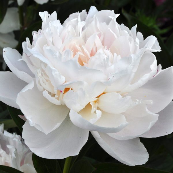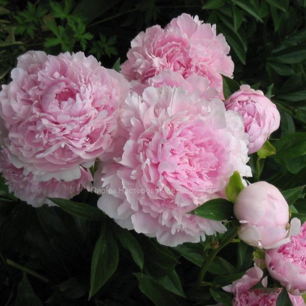 A.E. Kundred (Кундред 1961, США) Махровый. Розовидный. Цветок 16 см диаметром, белый с кремовым оттенком внутри. Пионы имеют листья темно-зеленые, блестящие. Стебли сильные, толстые. Срок цветения поздний. Сильный запах розы. Лидер московских выставок. Очень популярный.