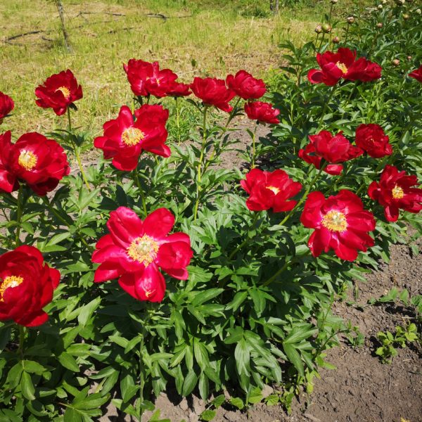 Alexander Woollcott (Saunders, 1941) Пион имеет большие полумахровые цветки насыщенного красного цвета. Цвет сохраняется в течение всего цветения. Эффектно смотрятся крупные цветы на компактных прямостоячих кустах. Высота 60 см. Листья некрупные, светло-зеленые. Стебли прочные.