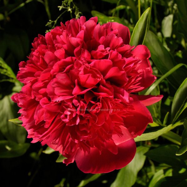 Carol (Бокстос, 1955) Межвидовый гибрид. Махровый розовидный. Диаметр цветка 16 см. Высокого строения с крупными складчатыми лепестками, за счет чего у центра как бы несколько макушек. Цветок ярко-красный, ровно-красный чистого тона. Самый красный из махровых гибридов, блестящий. Стебли изгибаются. Не выгорает. Пионы высотой 80-90 см. Срок цветения ранний. Чемпион нац. выставки США.