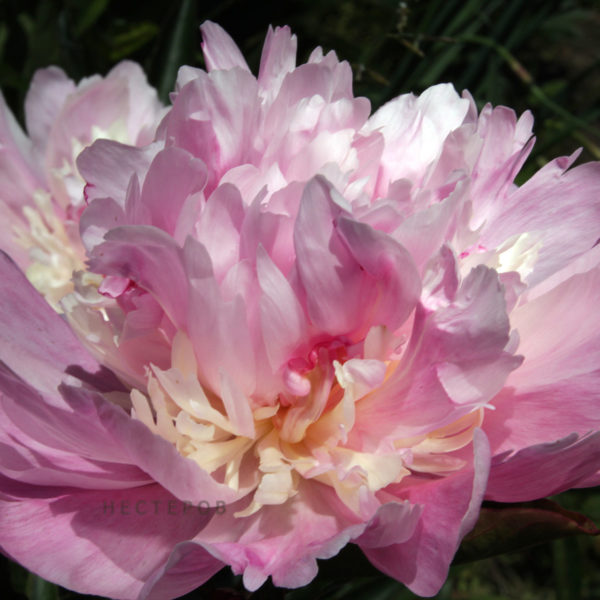 (Горобец, 1989) Пион японский. Чашевидный, двухрядный, крупный. Перламутрово-розовый. Стаминодии желто-розовые. В процессе цветения изменяет цвет от розового до перламутрового. Разрастается очень хорошо. Стебли не толстые, но расположены близко друг от друга, поэтому при цветении листвы не видно. Высота 80 см. Шедевр Горобца. Единственный отечественный сорт получивший медаль в США.