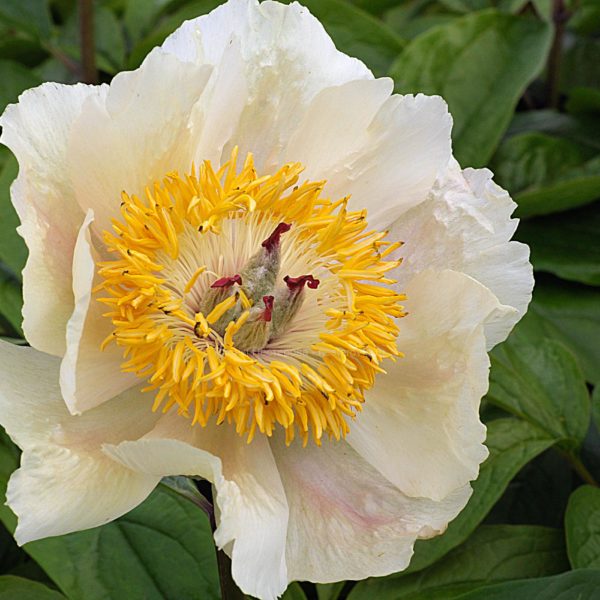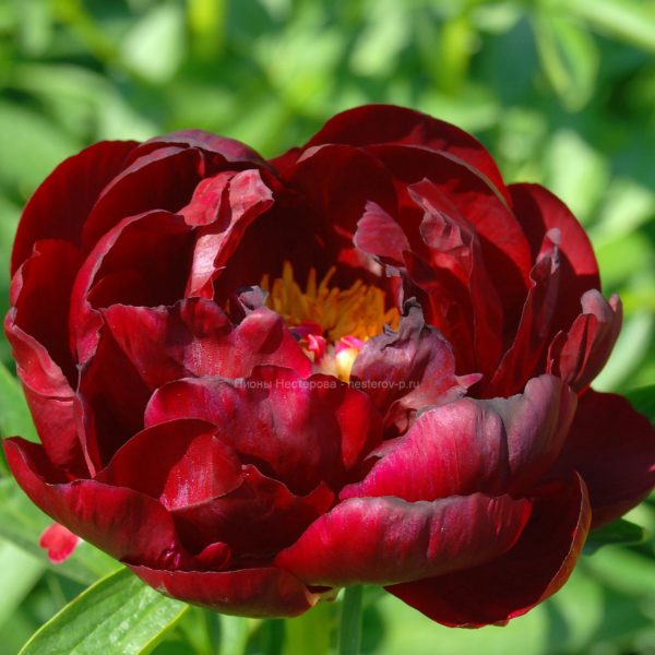 0 ₽Zolotoe Runo (Акимов М.И., 1974, СССР) Японской формы. Малиново-розовый. Стаминодии той же окраски с золотистым окаймлением и кончиками, закрученными внутрь. Диаметр 16 см. Листва темно-зеленая. Куст компактный. Стебли прочные, толстые. Высота до 70 см. Аромат слабый. Срок цветения средний.