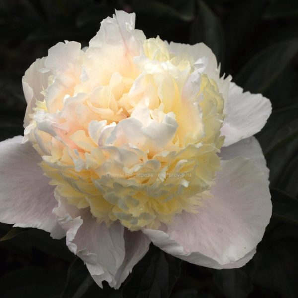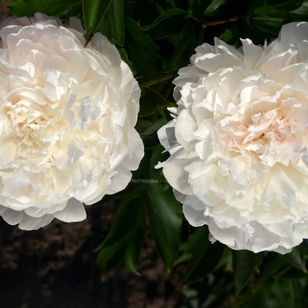 Lada (Акимов М.И., 1970, СССР) Травянистый. Махровый, розовидный. Кремово – белый. Есть тычинки. Диаметр 16 см. Высота 90 см. Запах слабый. Очень ранний срок цветения.