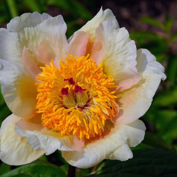 Курильские острова (Дубров, 1989). Пион двухрядный, чашевидный, японский. Диаметр 16 см. В дальнейшем становится анемоновидным.
