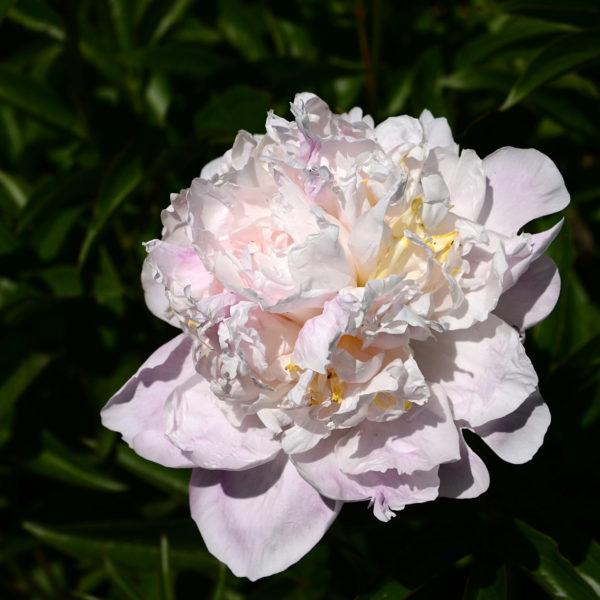 (Cкакодуб, 2010) Махровый, молочноцветковый. Цветок сиренево-розового цвета с желтым отсветом в серединке. Стебли толстые, не требующие поддержки. Аромат слабый. Диаметр цветка 17 см. Высота 80 см. Срок цветения средний.
