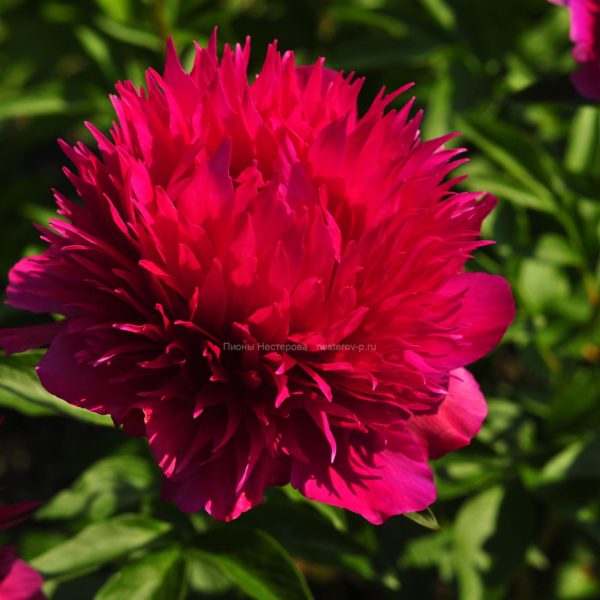 Irokez (Горобец, 2007) Анемоновидная форма.Цветок диаметром 16–18 см, густо-розово-малиновой окраски. Центральные лепестки очень редкой для пионов формы — узкие, длинные, с зубчиками и заостренным краем, направлены вверх и в стороны, образуя открытый центр в виде воронки. Куст высотой 90–100 см, компактный, с мощными стеблями. Сорт сверхраннего срока цветения.