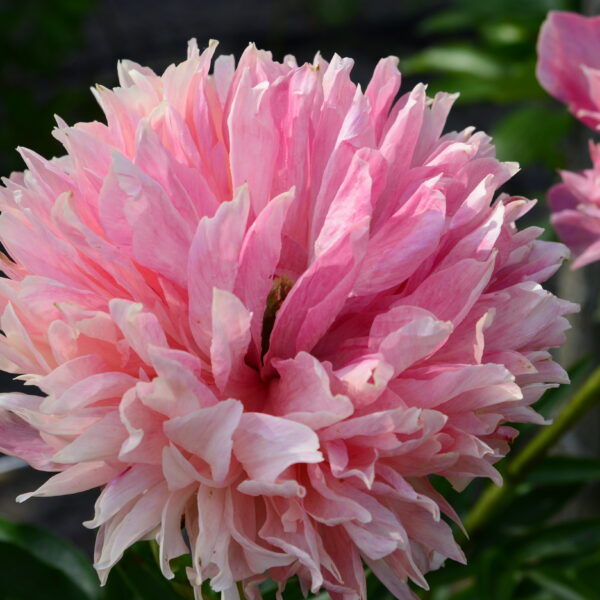 (Лариса Скакодуб) Пион японской формы, двухрядный. Лепестки крупные, мягкой розовой окраски. В центре помпон из более светлых стаминодий. Стебли крепкие. Листва зеленая, здоровая. Немного истории: пион назван в честь дочери сестры.