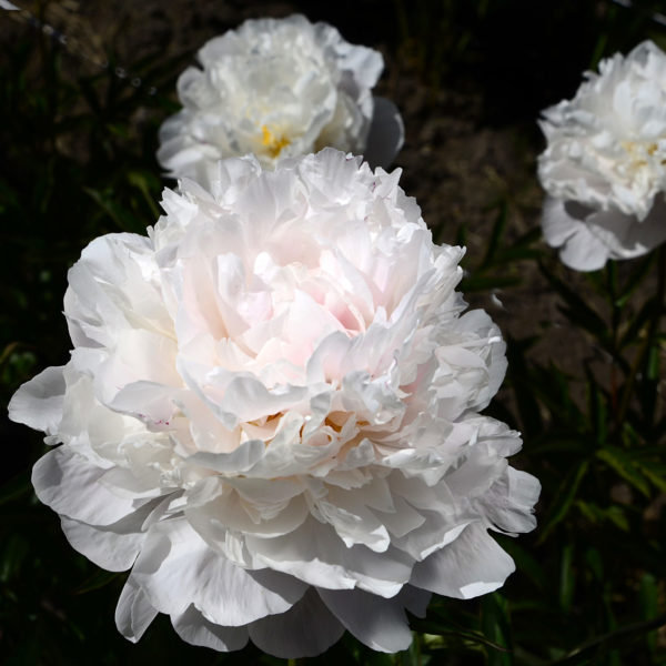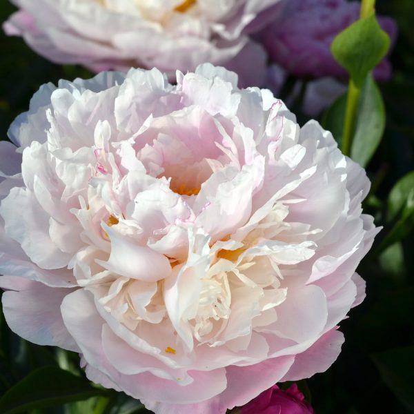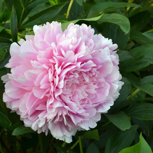 (Скакодуб Л 2011 г) Пион травянистый. Полу-махровый. Внешние лепестки нежно-розовые, внутренние белые и более мелкие. Пионы высотой 90см. Срок цветения средний. Запах слабый