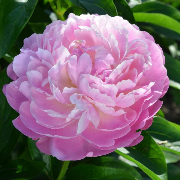 Svetlana Udinceva (Дубров В.М., 1995, Россия) Травянистый. Сорт от p. lactiflora. Махровый, розовидный. Цвет розовый, с широким кремовым поясом. Есть боковые бутоны. Диаметр 15 см. Высота 80 см. Запах слабый. Срок цветения поздний.