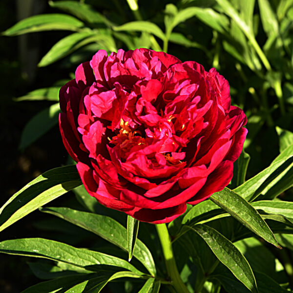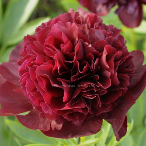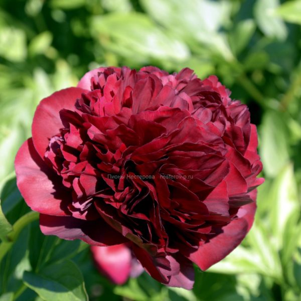 (Скакодуб, 1979) Махровый, розовидный, вишневого цвета. Диаметр цветка 17 см. Высота 100 см. Листья темно-зеленые. Стебли изогнутые. Срок цветения – среднепоздний.