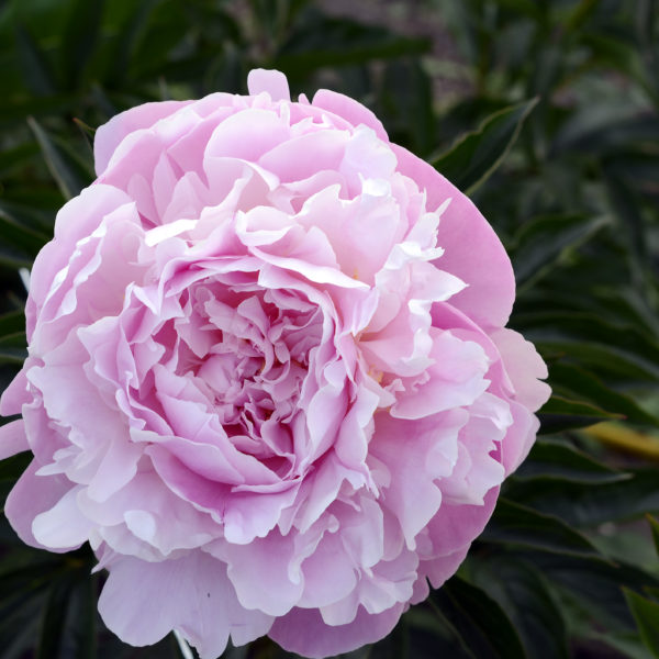 Skarbnytsya (Gorobez, 1994, Ukraina) Травянистый. Махровый, розовидный. Цветок огромный, туго набитый, идеальной формы, розово-сиреневый. Диаметр 18 см. Листья слегка матовые, некрупные. Стебли прочные. Куст сильный, мощный. Высота 90 см. Ароматный. Срок цветения средний.